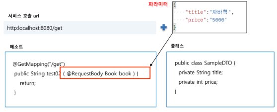 - 파라미터로 받은 JSON형태의 데이터를 자바 클래스로 변환한다.