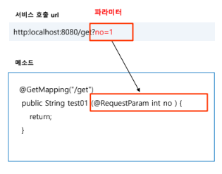 - 필요한 파라미터를 URL뒤에 “?no=1”과 같은 형태로 추가해서 호출한다