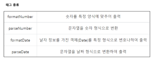 • 숫자, 문자열, 시간, 날짜를 가공하는 태그 제공